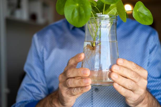 - Tomar un vaso transparente y colocar tu esqueje en el centro, asegurándote de que la parte cortada no toque directamente la base del recipiente.